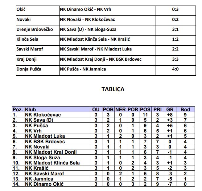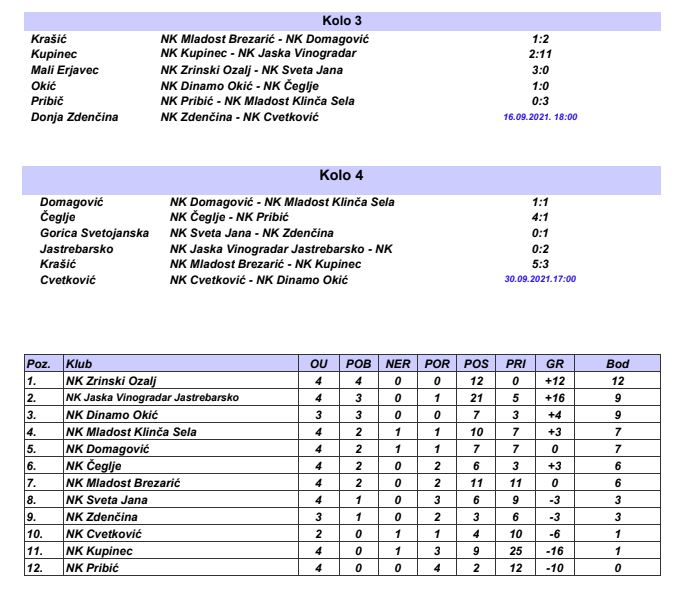 Domagović – Mladost Klinča Sela 1:1, Čeglje – Pribić 4:1, Sveta Jana – Zdenčina 0:1, Mladost Brezarić – Kupinec 5:3, Jaska Vinogradar – Zrinski Ozalj 0:2.