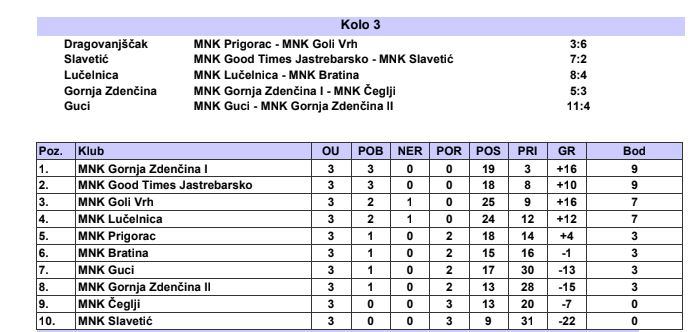 Treće kolo odigrano je u malonogometnoj ligi, a zabilježeni su ovi rezultati: