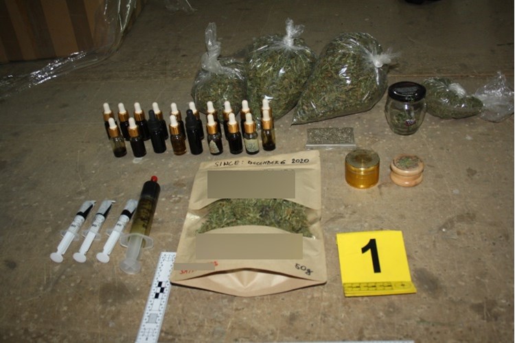 Policijski službenici iz Jastrebarskog su tijekom pretrage kuće i drugih prostorija u Klinča Selima pronašli opremu za umjetni uzgoj bilja, 25 komada stabljika marihuane visine između 35 i 76 cm, oko 25.365 grama usitnjene i sasušene marihuane pakirane u 17 plastičnih vreća i 11 staklenih posuda, 20 bočica te 5 medicinskih šprica ispunjenih tinkturom marihuane.