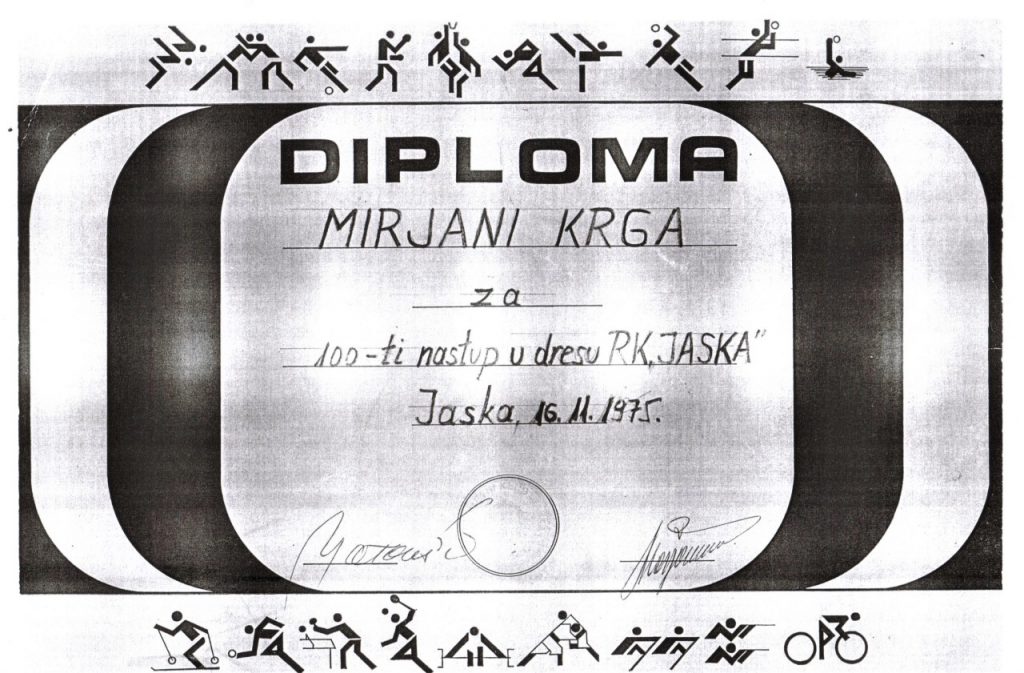 Mirjana nikako ne može zaboraviti i sve drage sponzore koji su financijski podržali rukometašice RK Jaska da su mogle imati sportsku torbu, dresove, trenirke i lopte. Pamti i utakmicu u Koprivnici kad je cijelu utakmicu „dobila“ jako visoku igračicu da na njoj igra „flastera“. Valja se podsjetiti i situacije kad su posuđivale golove iz jaskanskog garnizona da bi mogle odigrati utakmicu jer svega toga na početku nije bilo.