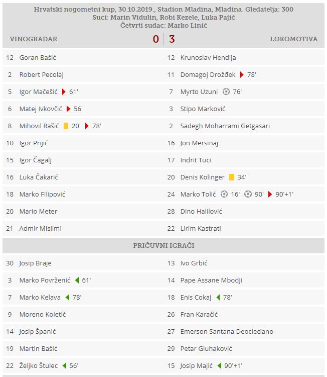 Strijelci: 0:1 Tolić (16′), 0:2 Uzuni (76′), 0:3 Tolić (90’+)