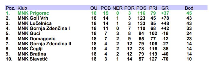 MNK Gornja Zdenčina I – MNK Čeglji 9:7