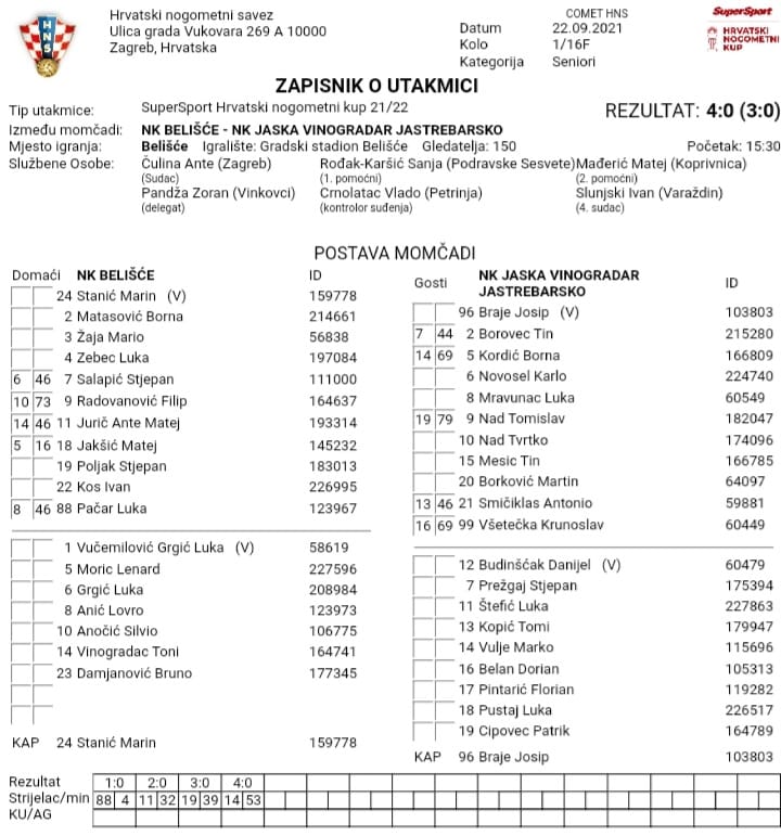 Premijerni je to bio nastup jaskanskog nogometnog kluba u 96-godišnjoj povijesti u ovoj fazi Hrvatskog nogometnog kupa. Podsjetimo, u lipnju ove godine spojili su se NK Jaska i NK Vinogradar u NK Jaska Vinogradar Jastrebarsko, a klub je preuzeo statusni koeficijent nekadašnjeg Vinogradara što je omogućilo nastup u 1/16 finala Hrvatskog nogometnog kupa gdje su jučer završili svoj put.