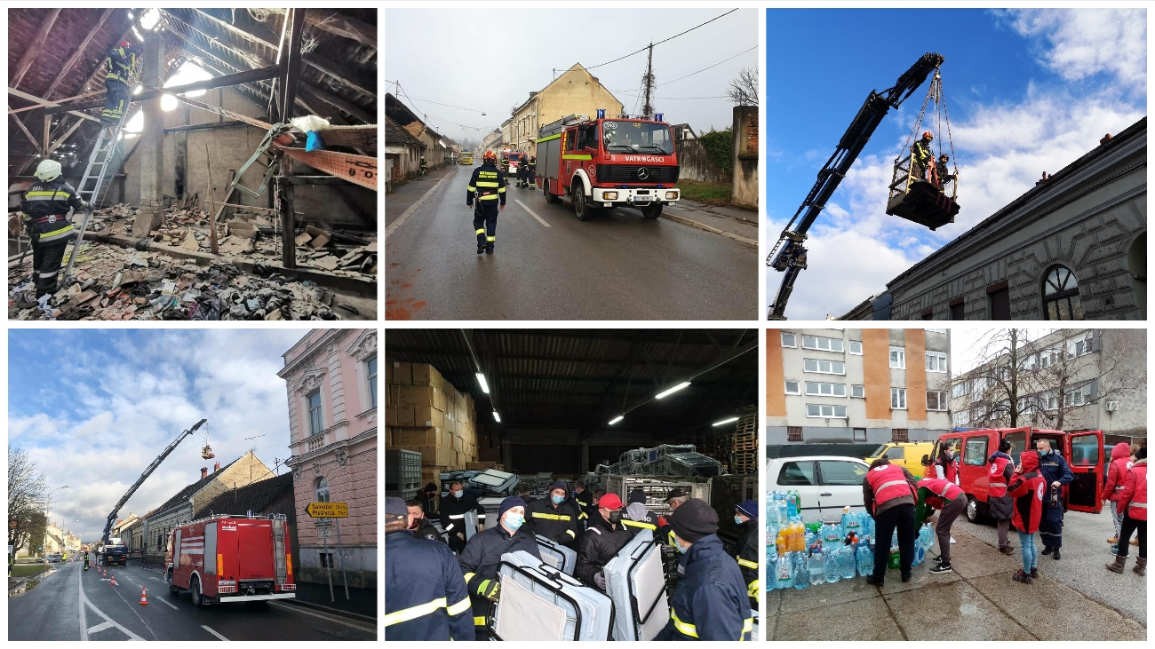 Istovremeno jedan sat nakon potresa po nalogu županijskog vatrogasnog zapovjednika u Petrinju je upućena vatrogasna postrojba DVD-a Jastrebarskog s kombi vozilom, nosilima i 4 vatrogasca kako bi pomogla u spašavanju ozlijeđenih osoba u potresu. U 12 sati i 54 minute mobiliziran je i tim za spašavanje iz ruševina Civilne zaštite Republike Hrvatske u kojem je 8 vatrogasaca iz DVD-a Cvetković, DVD-a Čabdin i DVD-a Gornji Desinec, koji je krenuo put Siska, Petrinje i Gline.
