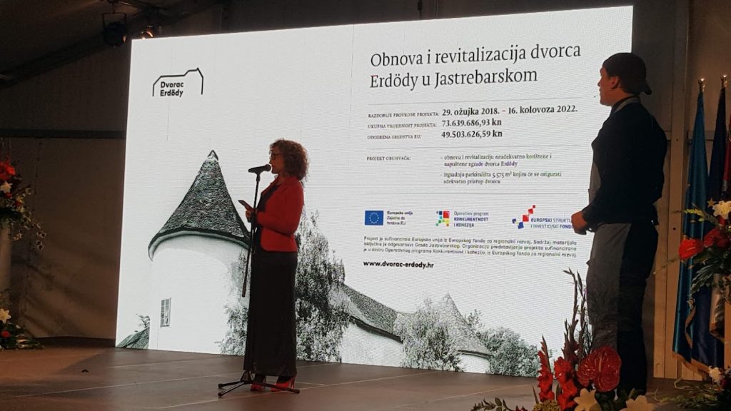 Projekt Obnove i revitalizacije dvorca Erdödy u Jastrebarskom vrijedan više od 73,6 milijuna kuna, jučer navečer svečano je predstavljen javnosti. Projekt obnove simbola grada sufinancira se sredstvima Europske unije iz Europskog fonda za regionalni razvoj, u iznosu od 49,5 milijuna kuna, dok ostatak novca, od 24,1 milijuna osigurava Grad Jastrebarsko.