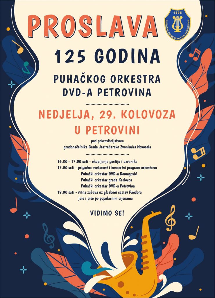 Nakon prigodne svečanosti u 17 sati, uslijedit će i prigodni glazbeni program u kojem će, osim domaćina i slavljenika, Puhačkog orkestra DVD-a Petrovina, nastupiti puhači DVD-a Domagovića i grada Karlovca.