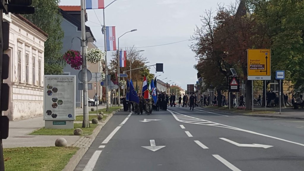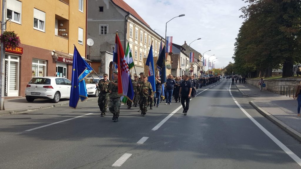 Branitelji, od Žumberka do Kupe, okupili su se potom na Strossmayerovom trgu gdje su svi dobili jednake, prigodne majice i gdje ih je kratko pozdravila zamjenica gradonačelnika Nikolina Ribarić, nakon čega su organizirano u koloni prošli glavnom jaskanskom ulicom do Perivoja.